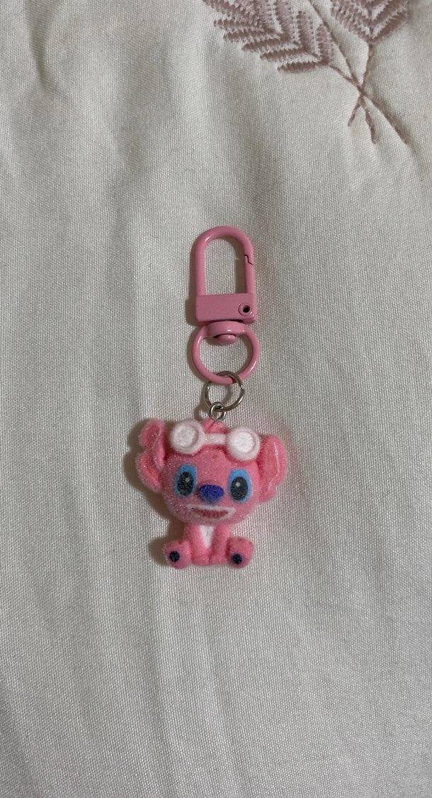 Pembe tonlarda, boncuklu sevimli karakter figürlü anahtarlık, rahat sokak stili için uygundur.