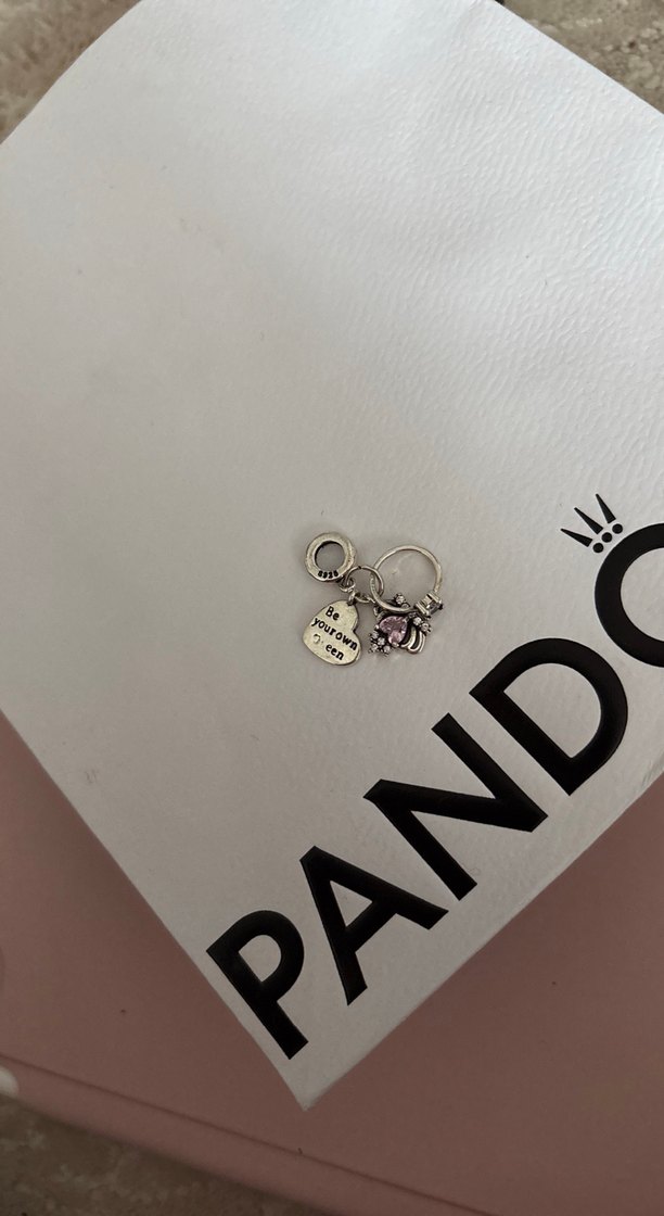 Kadınlar için pembe ve gri renklerde, boncuk detaylı baskılı charm. Romantik gece ve Paris sokak modasına uygun tarzda.
