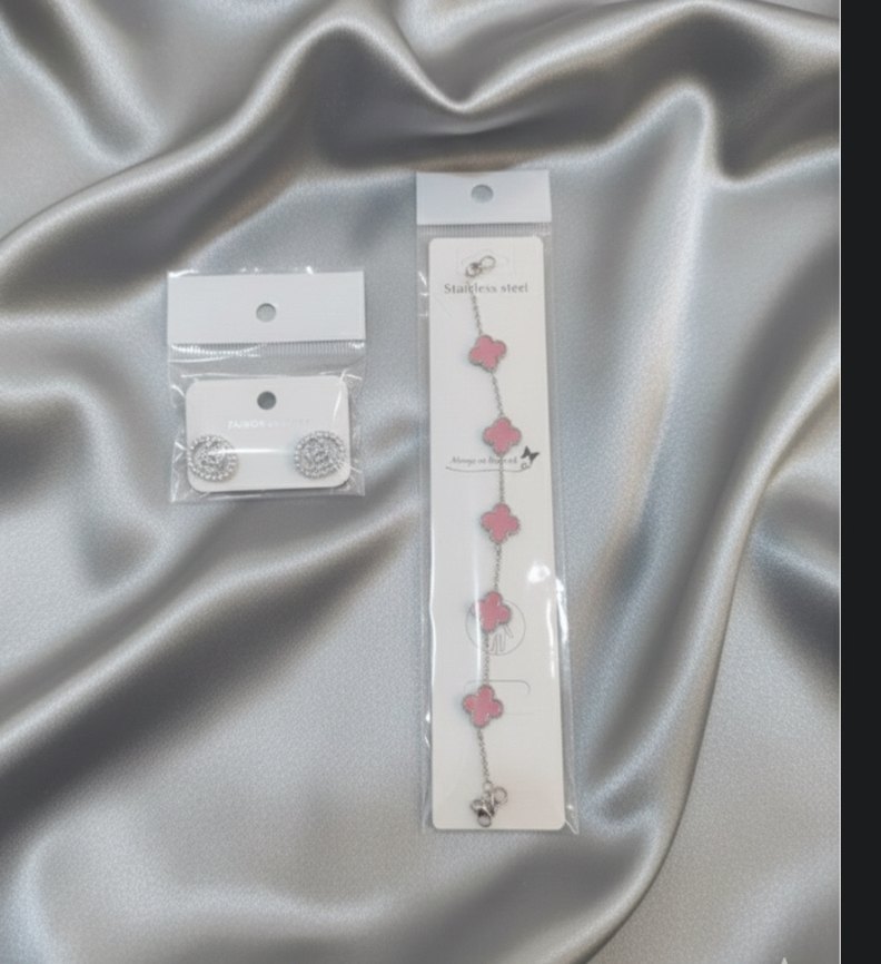 Pembe Boncuklu Minimalist Bileklik Çelik küpe ile birlikte