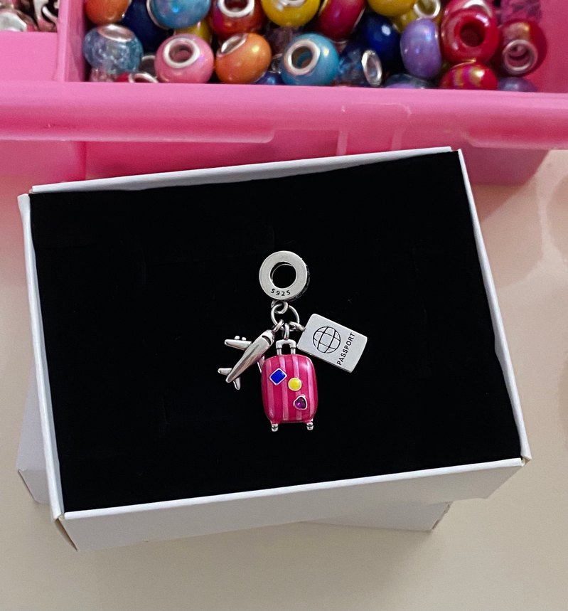 Pembe Boncuklu Seyahat Temalı Charm