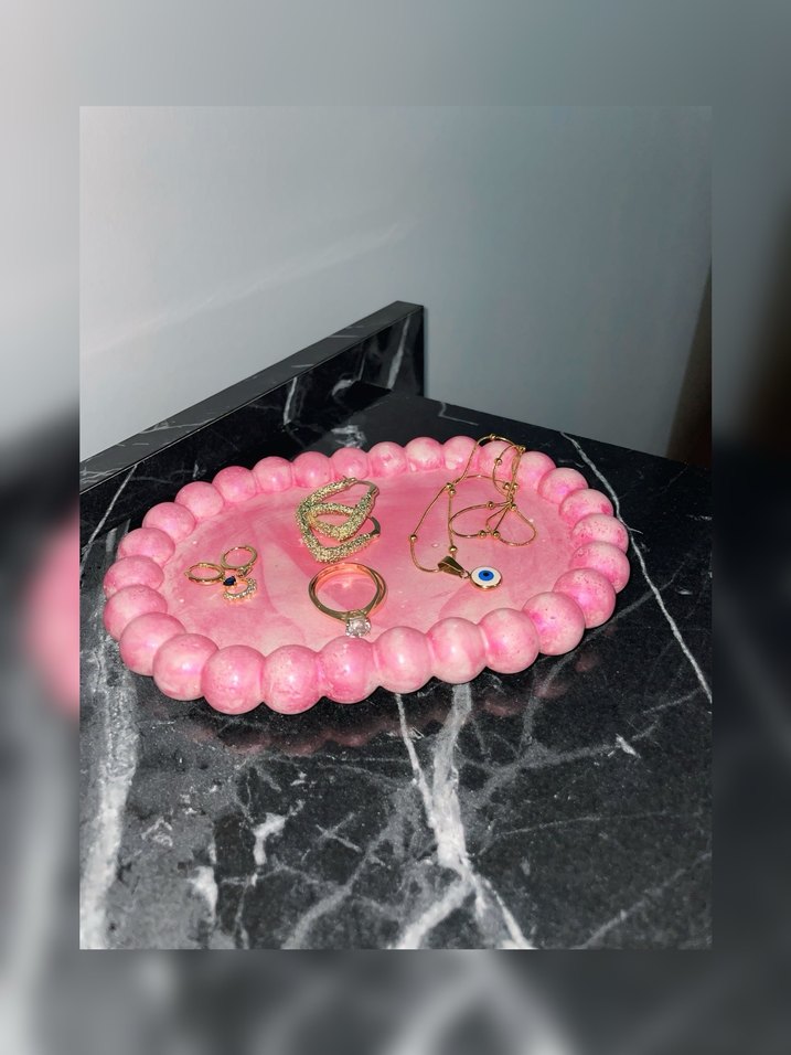 Pastel pembe boncuklu, bohem tie-dye tarzında. ✨Farklı renkleri de mevcut.