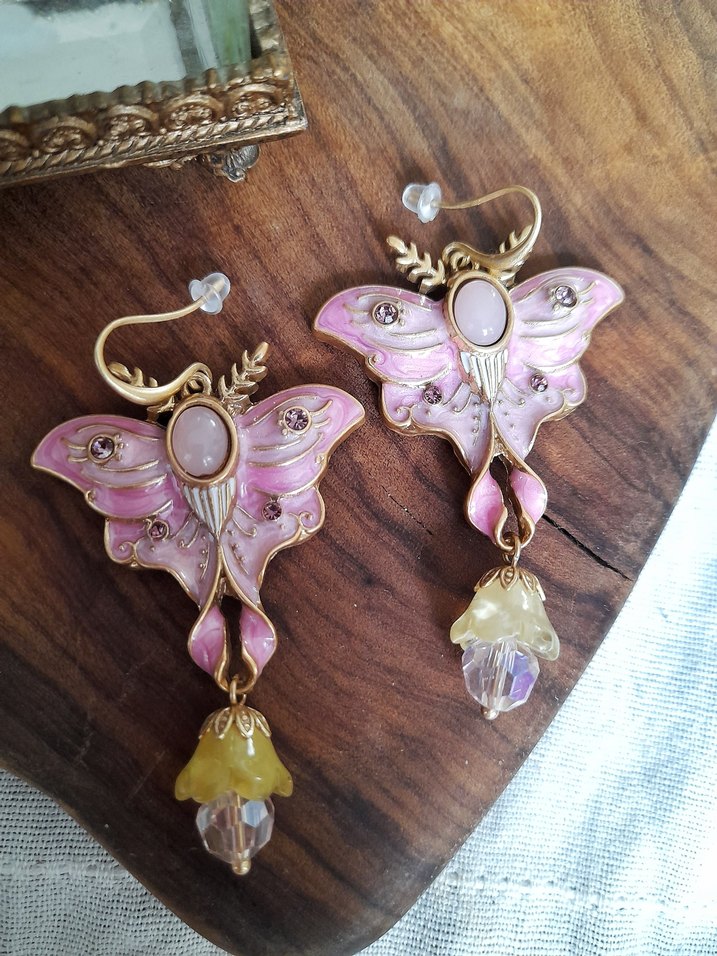 Uzun, pastel pembe renkte, boncuklu kelebek tasarımlı, nakış detaylı bohem ve vintage tarzında düğün için uygun küpeler. 1.kalite. Hediye kutusu ile gönderilecektir. gardropsumdaki diğer ürünlere bakmadan geçmeyin.