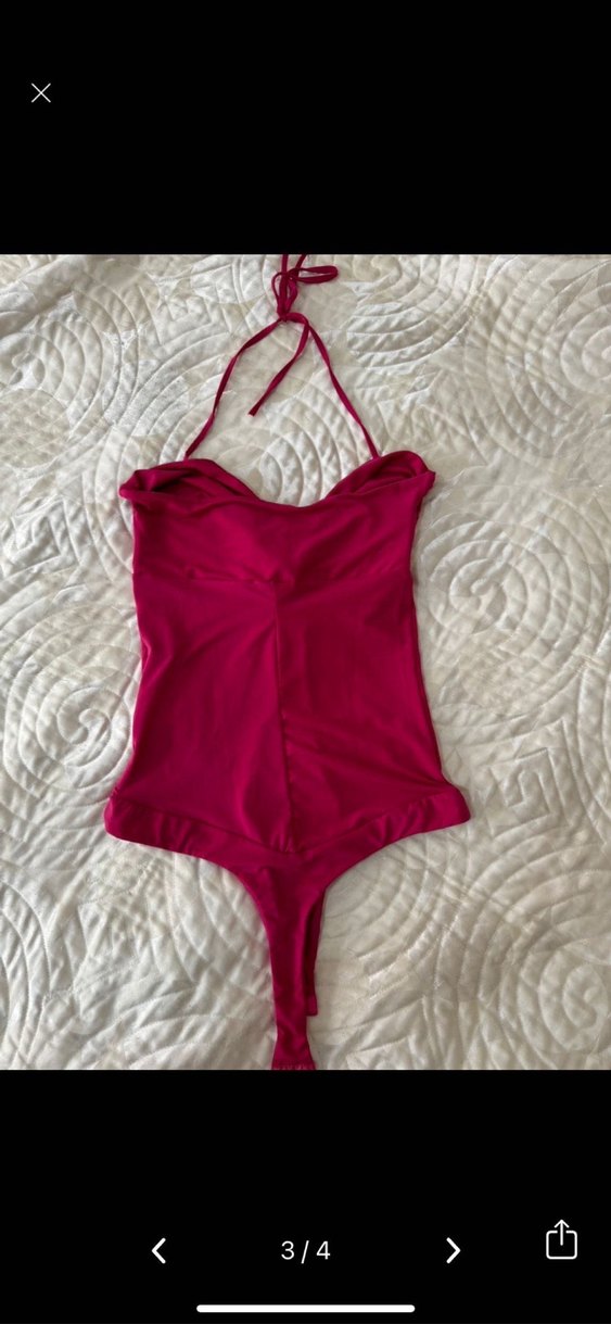Pembe boyundan bağlamalı mayo bodysuit