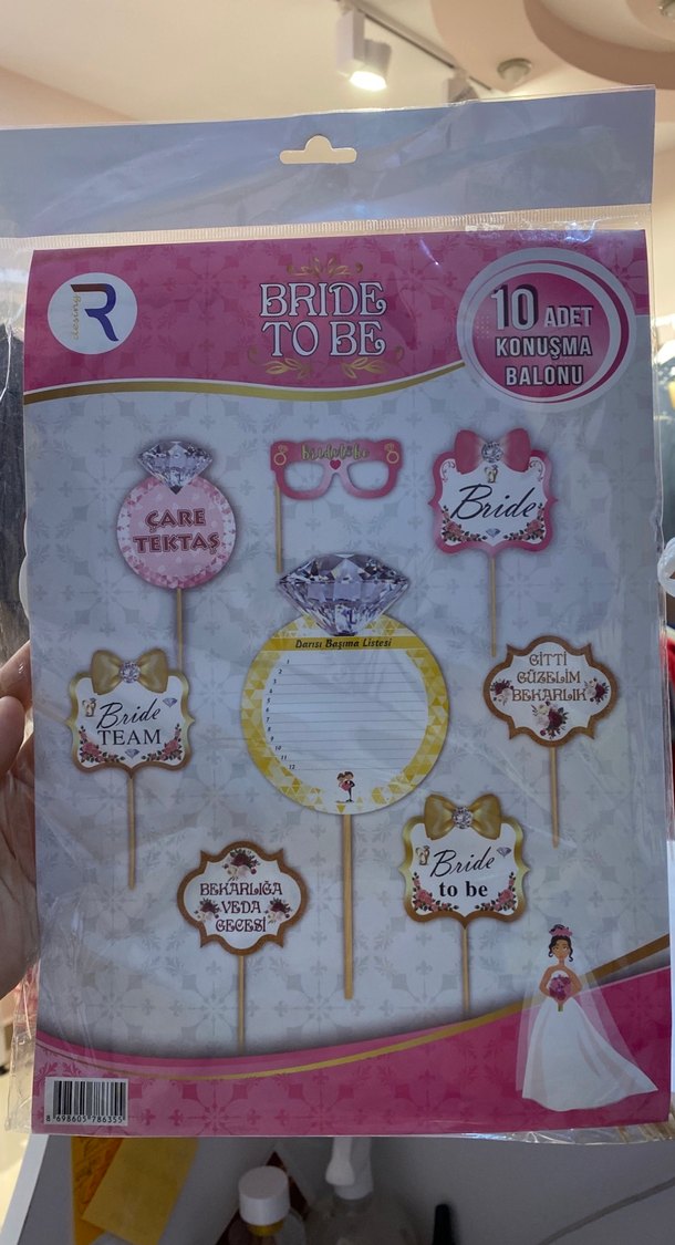Pembe tonlarında, gelin temalı 10 adet konuşma balonu seti. İçinde Bride to Be ve ekibi yazıları ile süslemeler bulunur.