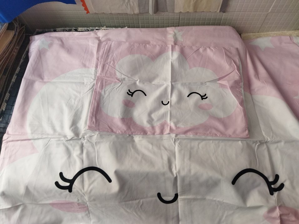 Pembe Bulut Desenli Çocuk nevresim ve yastık kılıfı