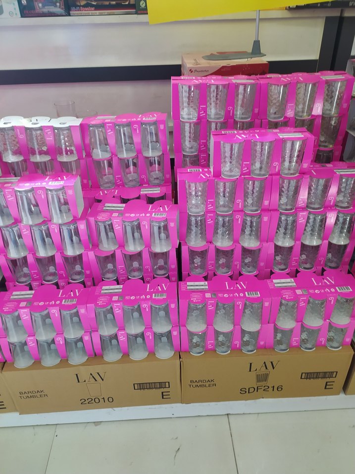 Pembe kutularda çoklu şeffaf cam bardak seti. 22010, SDF216 kodlu LAV marka ürünler.