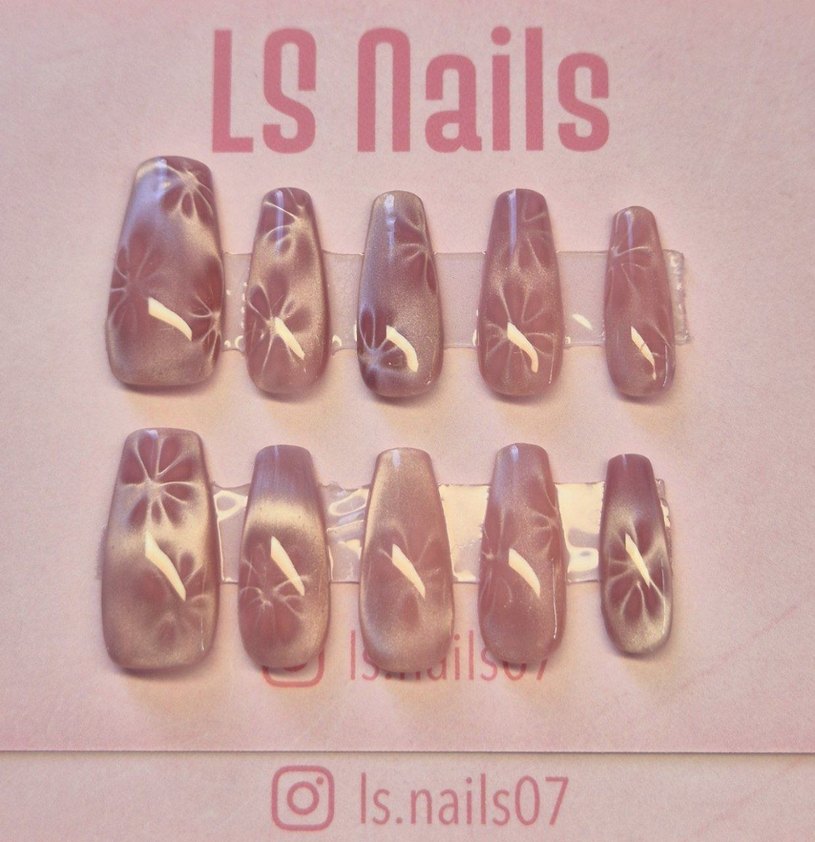 < Pembe, Cat eye ve zarif çiçek desenli jel tırnak > Lütfen ilan açtırınız! Tırnaklar el yapımı ✨️ Fotoğraflarda elimizde olan tırnak şekilleri ve boyutları bulunmaktadır ordan seçip ilanınızı açtırmadan önce bedeninizi ve istediğiniz tırnak boyutu belirtiniz Kutunun içinde 10 adet seçtiğiniz tırnak, 20 adet yapıştırıcı, tırnak eti ittirme çubuğu, törpü, normal ve alkollü mendil ile gönderim sağlanıyor Kişiye özel siparış yapılır ✨️