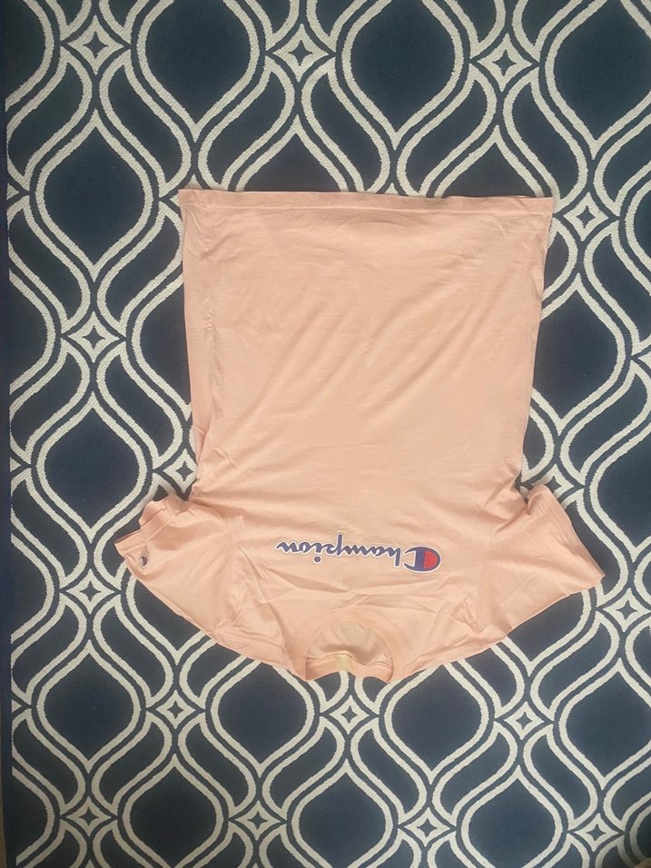 Pastel pembe Champion erkek tişört, kısa kollu ve salaş kesimdir. Sentetik yumuşak kumaştan üretilmiş, spor ve günlük kullanıma uygundur. Baskılı logo ile sade şıklık sağlar.