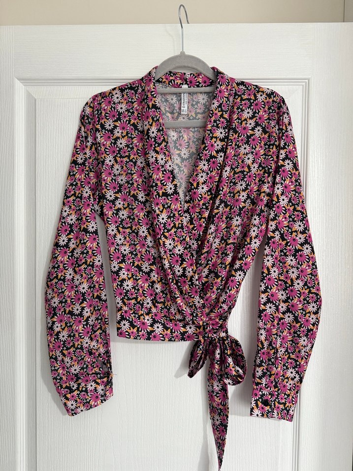 Pembe Çiçek Desenli Bağlamalı Bluz