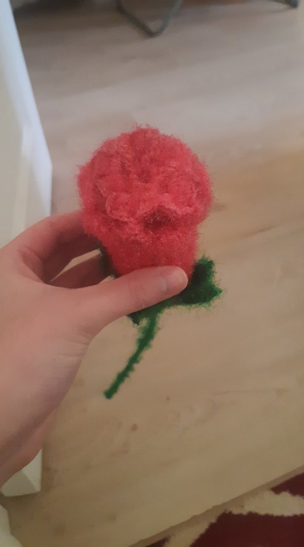 Yeşil saplı, çiçek şeklinde renkli pembe banyo süngeri, nazik temizlik için uygundur.