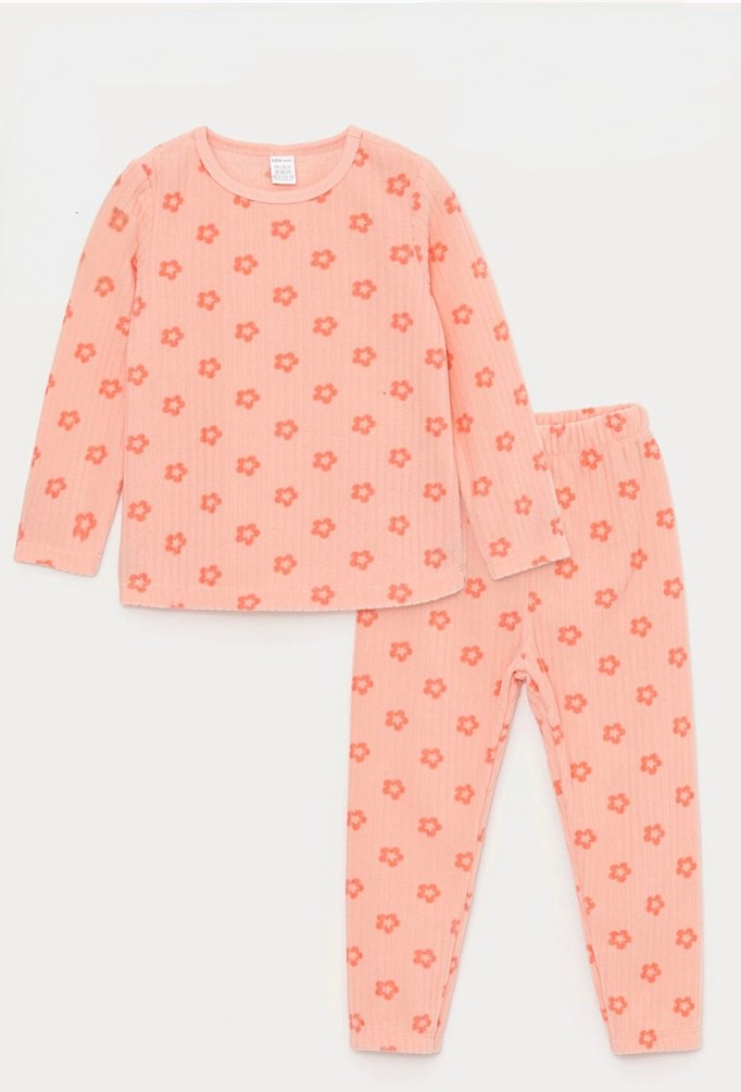 Uzun kollu, pastel pembe çiçek desenli bebek kız pijama takımı, polar ancak ince tarz oln polar çok tatlı bir takım 5-6 yas