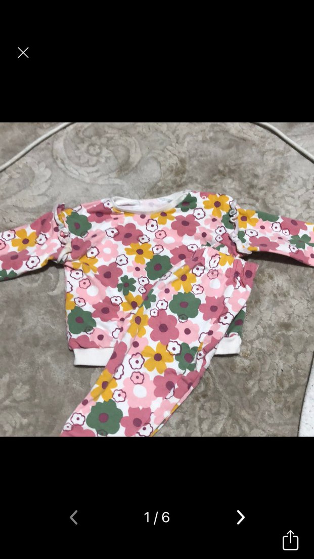 Pastel pembe, uzun kollu, çiçek desenli bebek kız takımı, yumuşak kürk detaylıdır. Bı sefer giyildi