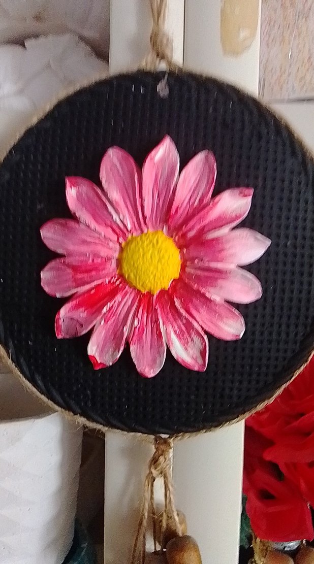 Pembe çiçek desenli, düğmeli, renkli bohem ve retro tarzda günlük kullanıma uygun broş.