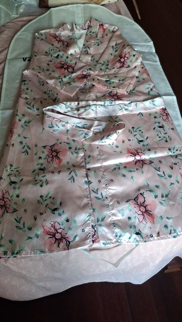 Pembe Çiçek Desenli Bohem Uzun Kadın Saten Pareo, Sabahlık