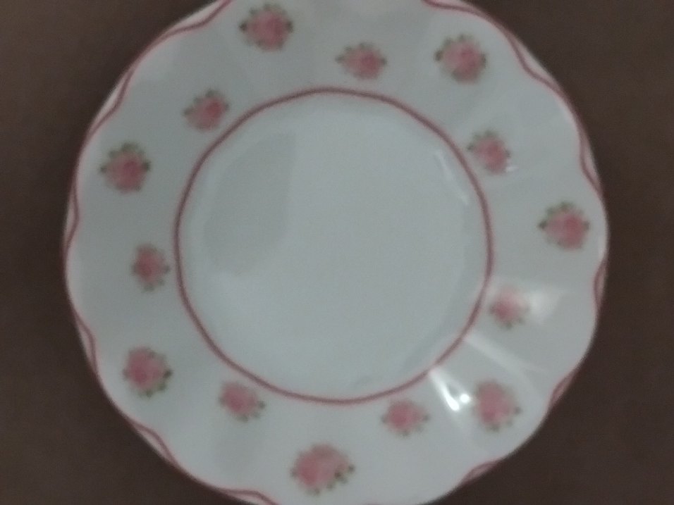 Beyaz üzeri pembe renkte, çiçek desenli çay tabağı.6 adettir.