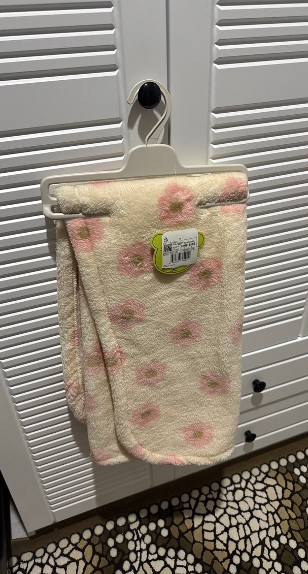 Yumuşak ve sıcak kumaştan yapılmış, pembe çiçek desenli pastel tonlarda çocuk battaniyesi.