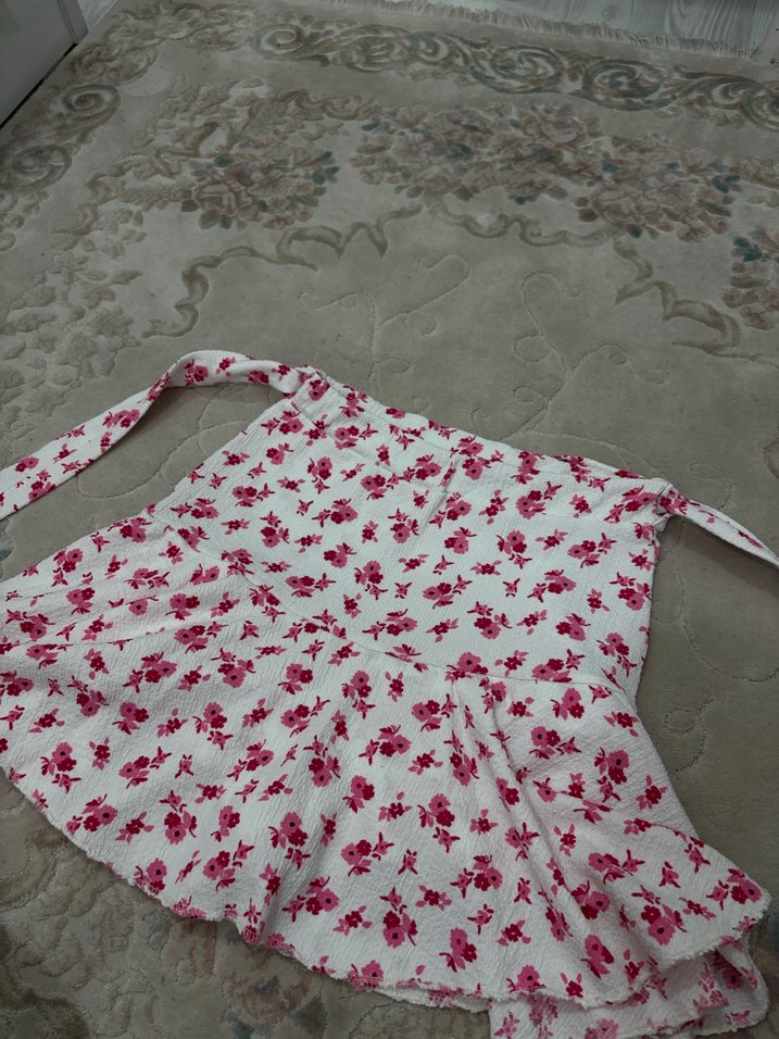 Pembe Çiçek Desenli İçi Şortlu Etek
