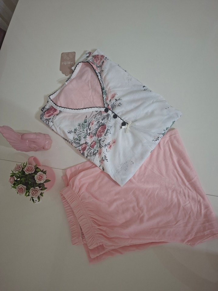 Pembe Çiçek Desenli Kısa Kadın Pijama Takımı