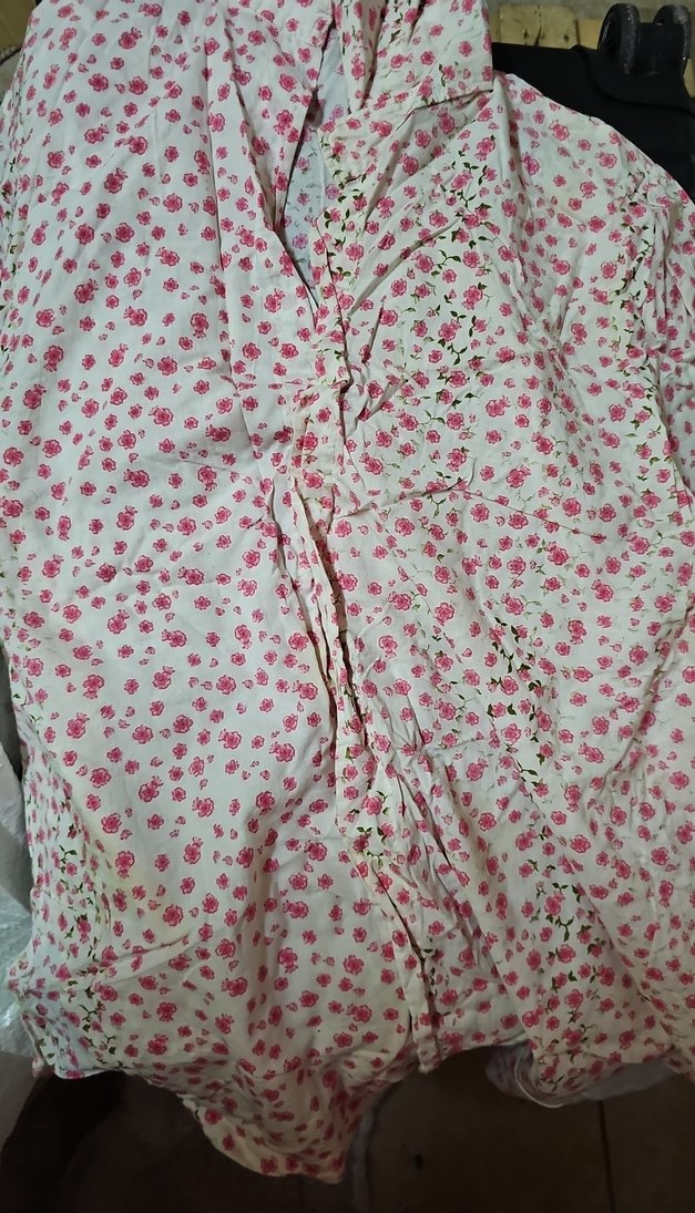 V yaka, pembe pastel çiçek desenli, uzun gömlek