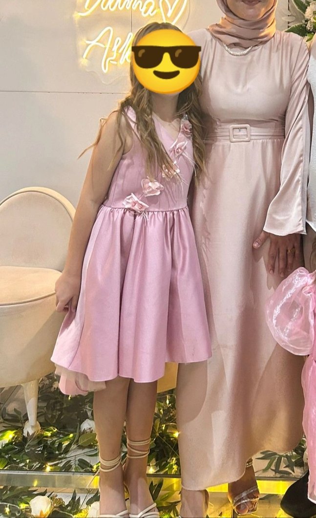 Pembe Çiçek Desenli Kız Çocuk Elbise