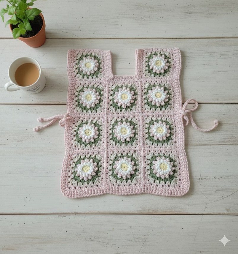 Pastel pembe renkte, çiçek desenli tığ işi kız çocuk süveter, yumuşak dokulu ve ayarlanabilir bağcıklarla rahat kullanım sağlar. Alize Coton Gold ile örülmüştür. En 34 cm boy 45 cm Sipariş üzerine istediğiniz renkte örebilirim .