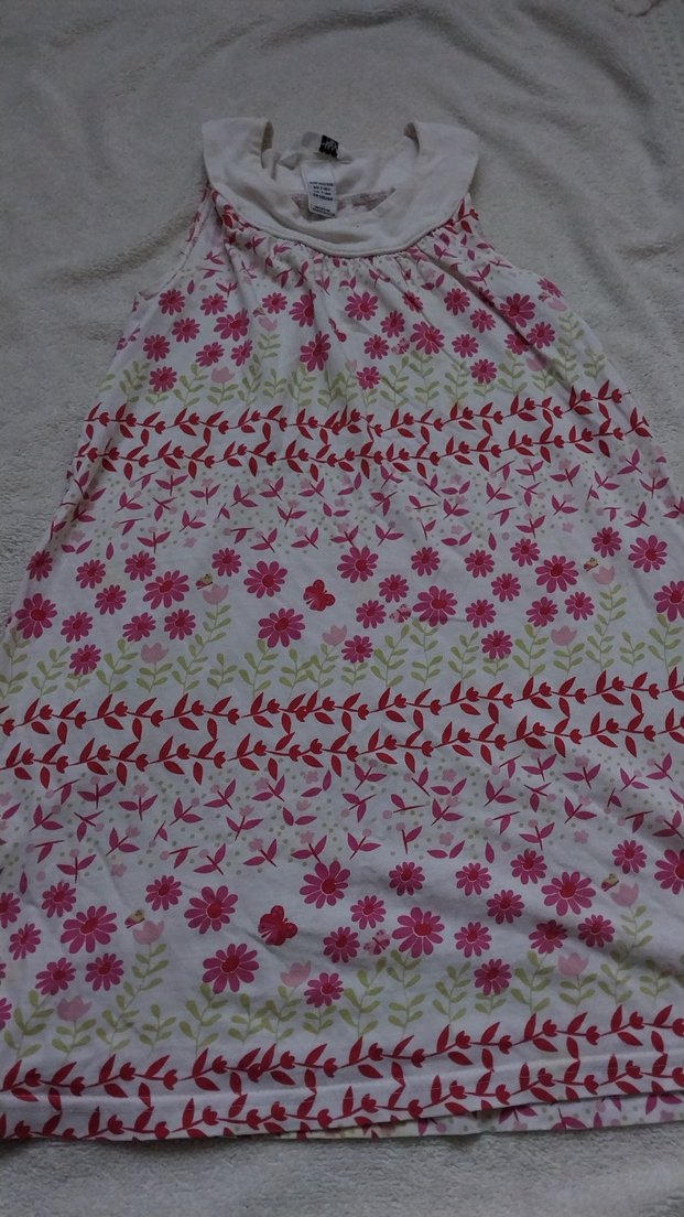 Kolsuz, tekne yaka ve fırfırlı kız elbisesi. Bol kesim ve pastel pembe çiçek desenine sahip, bohem tarz için uygun.