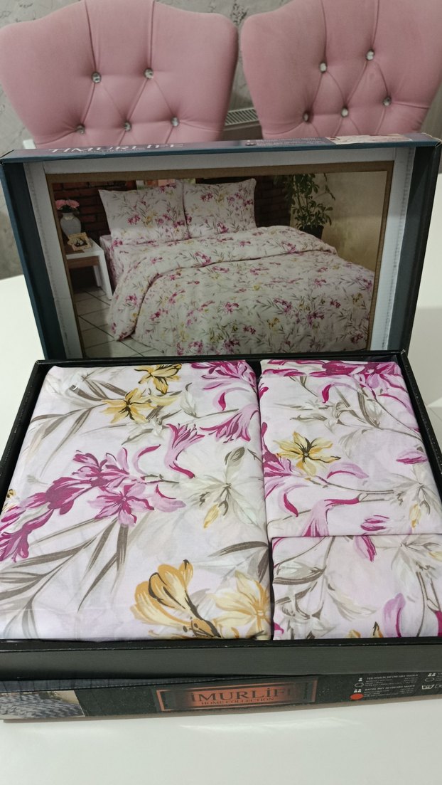 Yumuşak kumaş üzerinde sarı ve pembe çiçek desenleriyle hafif pembe tonlarında nevresim takımı, yatak odanıza zarif bir dokunuş katıyor.