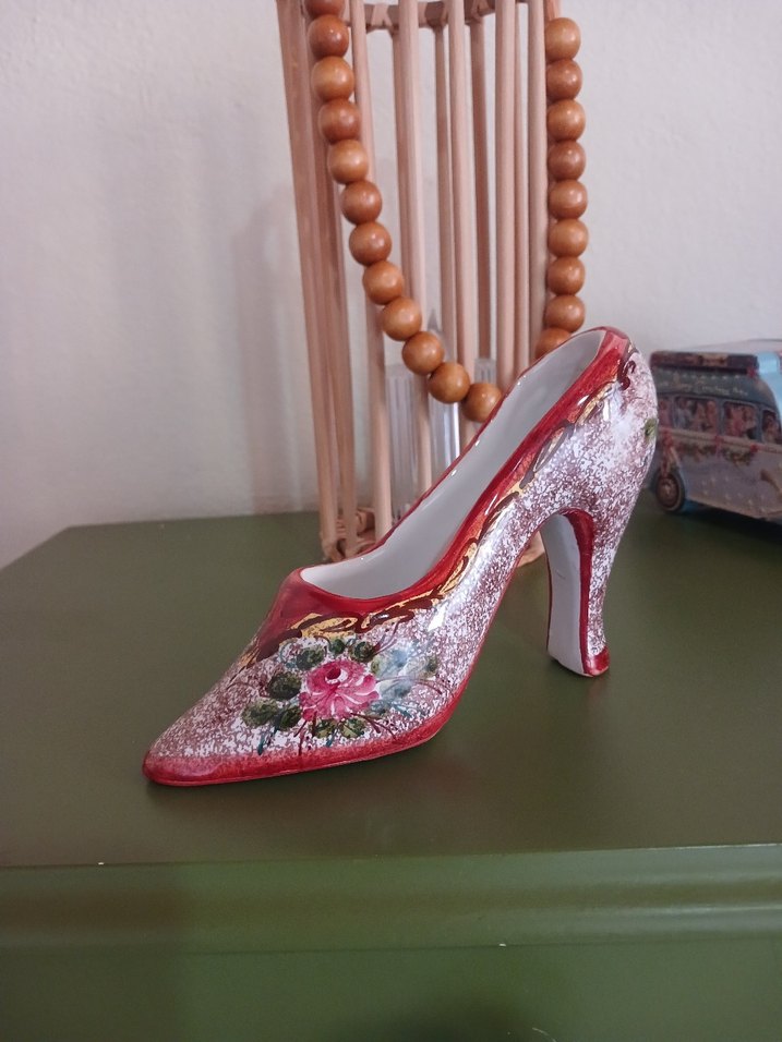 Pembe Çiçek Desenli Sırça Topuklu Kadın Ayakkabı biblo