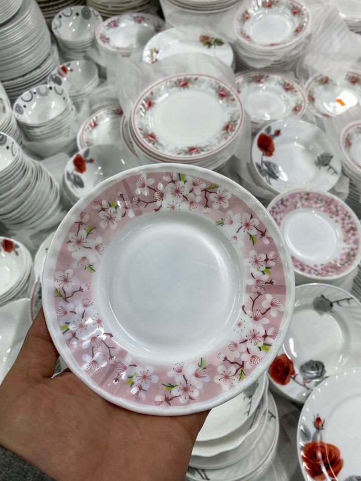 6 adet Yemek tabağı, kenarlarında açık pembe çiçek deseniyle zarif bir görünüm sunar.