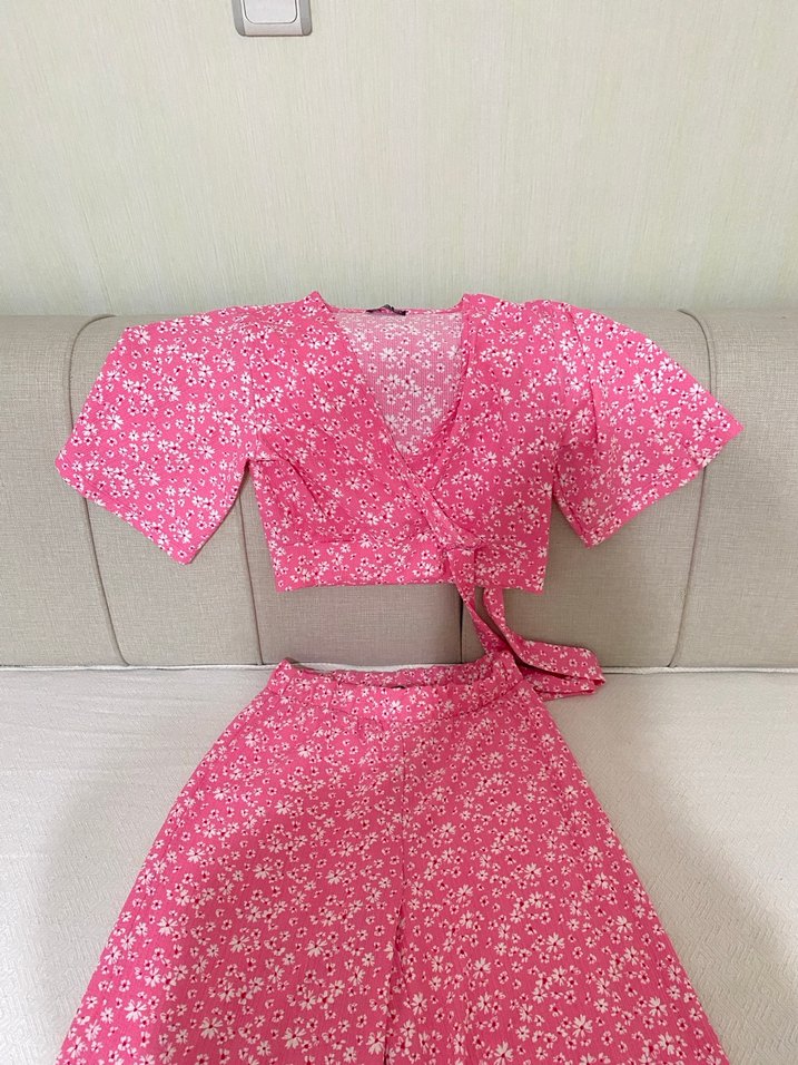 Pembe Çiçek Desenli Takım