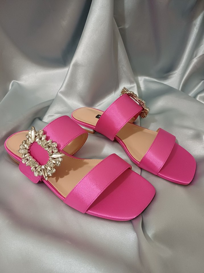 Pembe Çiçek Desenli Tokalı Kadın Terlik