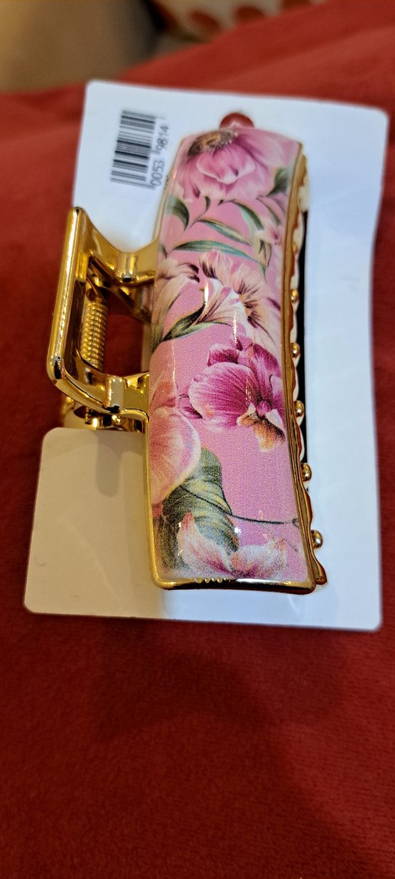 Pastel çiçek desenli, sentetik kumaştan yapılmış, tokalı pembe saç aksesuarı. Bohem tarzda, Paris esintili.