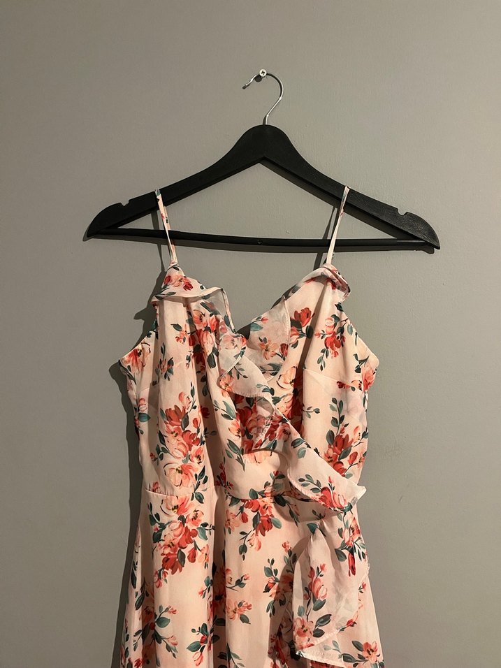 Pembe Çiçek Desenli Uzun Askılı Elbise - Görsel 1