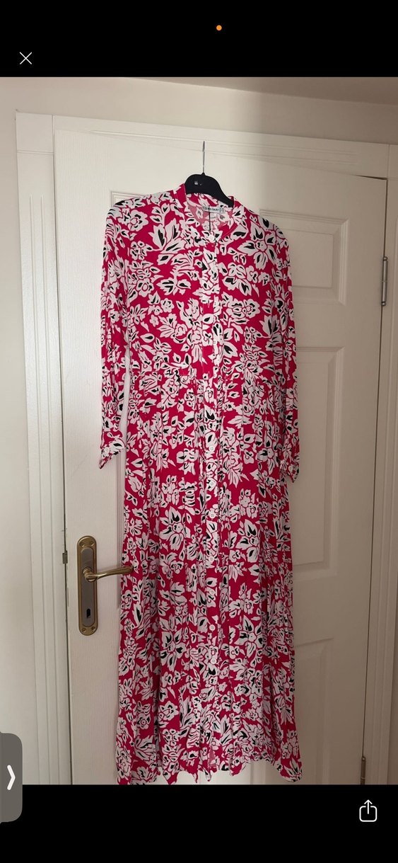 Pembe Çiçek Desenli Uzun Bohem Elbise