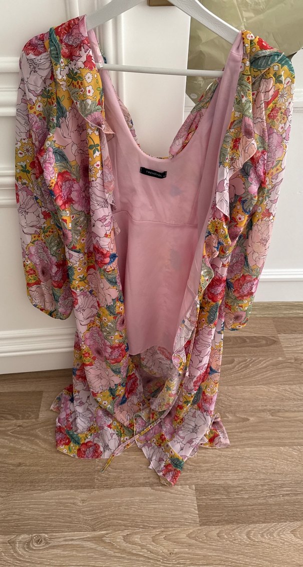 Pembe Çiçek Desenli Uzun Bohem Kimono