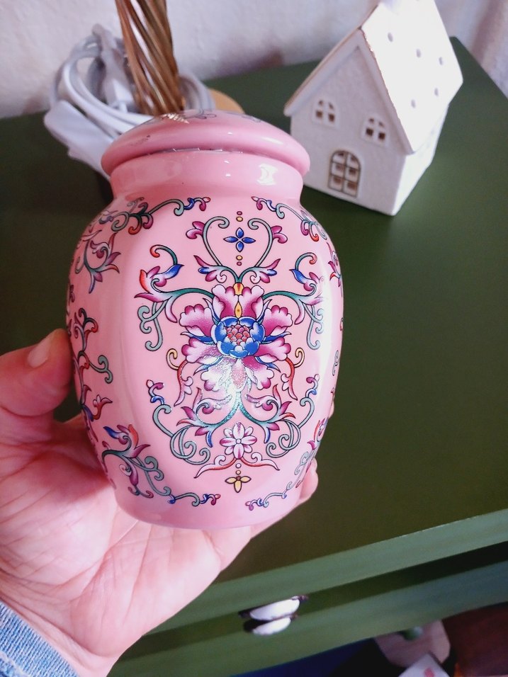 Pembe Çiçek Desenli VİNTAGE Vazo