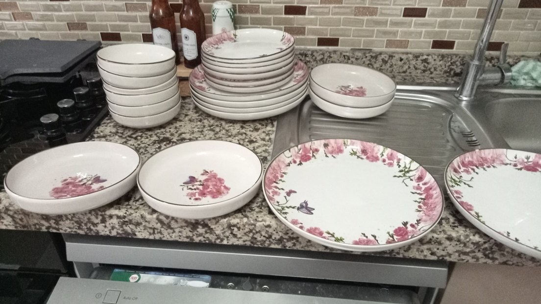 Pastel pembe renkte, çiçek desenli yemek tabakları seti, sofralarınıza şıklık katacak. 5 adet tabakta ufak çatlaklıklar var o yüzden ucuza veriyorum
