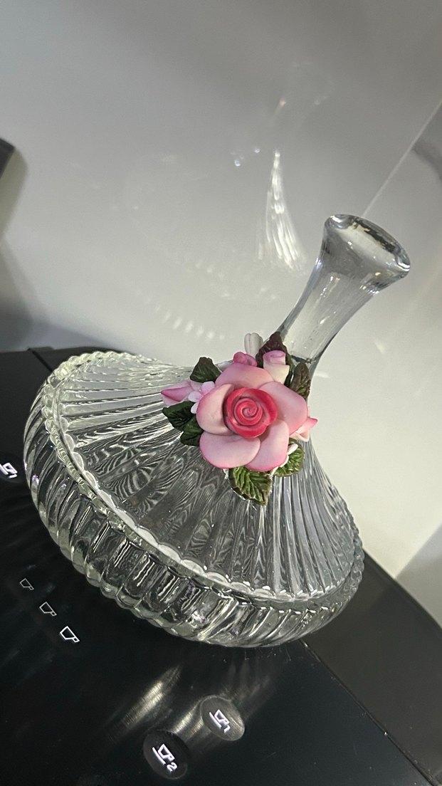 Kabartmalı cam yapısına sahip, pastel pembe çiçek detayıyla zarif bir şekerlik Daha miönce böylesini görmediniz tek kelimeyle Aşk ince işçilik mükemmel tasarım capodimonte çalışması sadece bir adet üretildi özel hissetmek isteyenler kaçırmasın 13 cm boy 12,5 eni ister lokumluk olarak kullanın ister şekerlik
