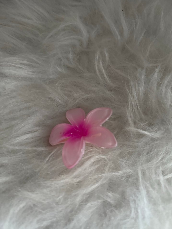 Pastel pembe renkte, fiyonk detaylı plastik saç tokası. Minimalist ve karşı kültür tarzını yansıtan şık bir aksesuar.
