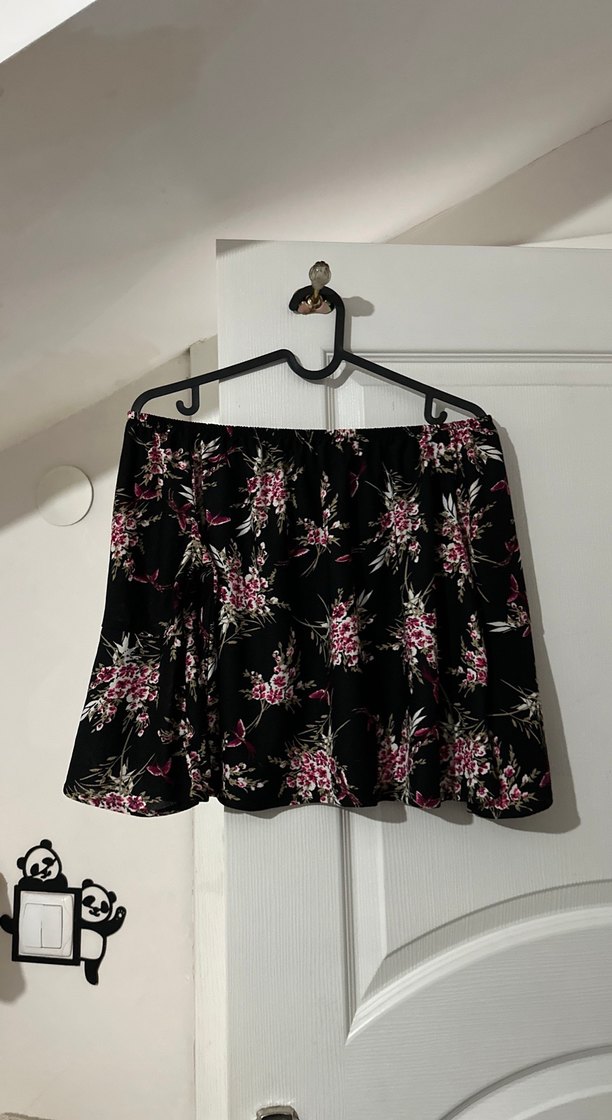 Pembe çiçek desenli, bol kesim ve fırfırlı bluz, yumuşak sentetik kumaştan üretilmiştir. Romantik akşamlar için uygundur.