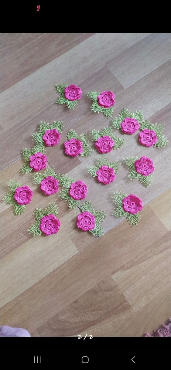 Yeşil yapraklı pembe el işi çiçek motifleri, bohem tarzda dekoratif el işleri için uygundur.