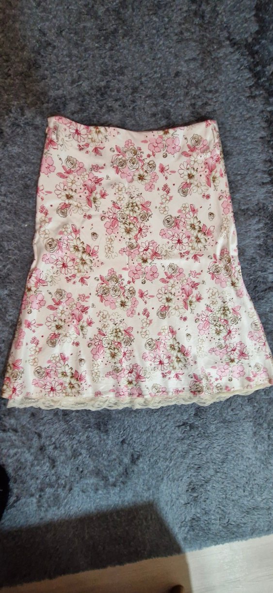 Saten kumaştan, dantel detaylı, çiçek desenli, bol kesim pembe bohem kız eteği.Beden olarak 38 ile uyumlu