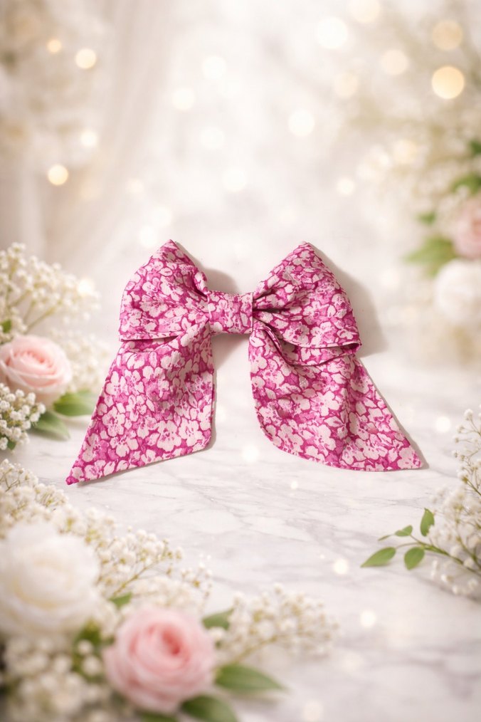 Pembe Çiçekli El Emeği Fiyonklu Saç toka modeli