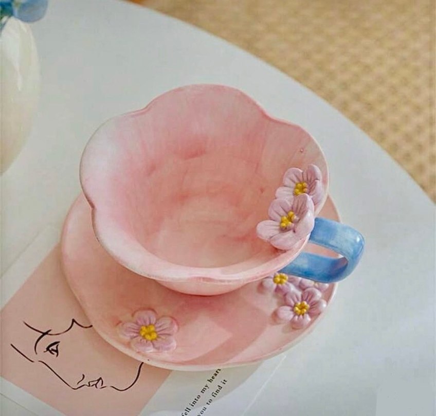Pembe Çiçekli Fincan ve Tabak