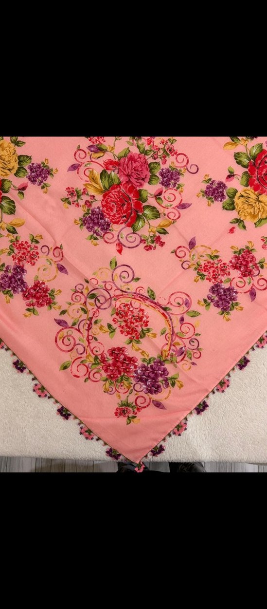 Pembe çiçek desenli ve 4 kenarlı bohem ve retro tarzı yansıtıyor. Yumuşak pastel renkler zarif bir görünüm sağlıyor.
