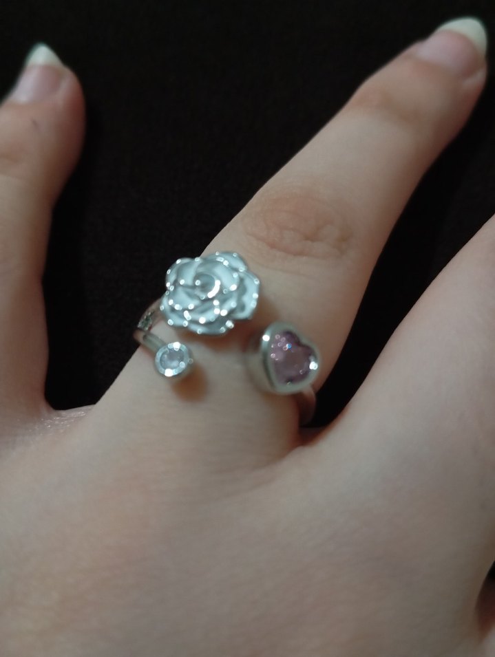 Pembe pastel renkli, çiçek desenli ve pırıltılı detaylara sahip kadın yüzüğü. Rock punk tarzıyla göz alıcı ve avant-garde bir görünüm sunar.