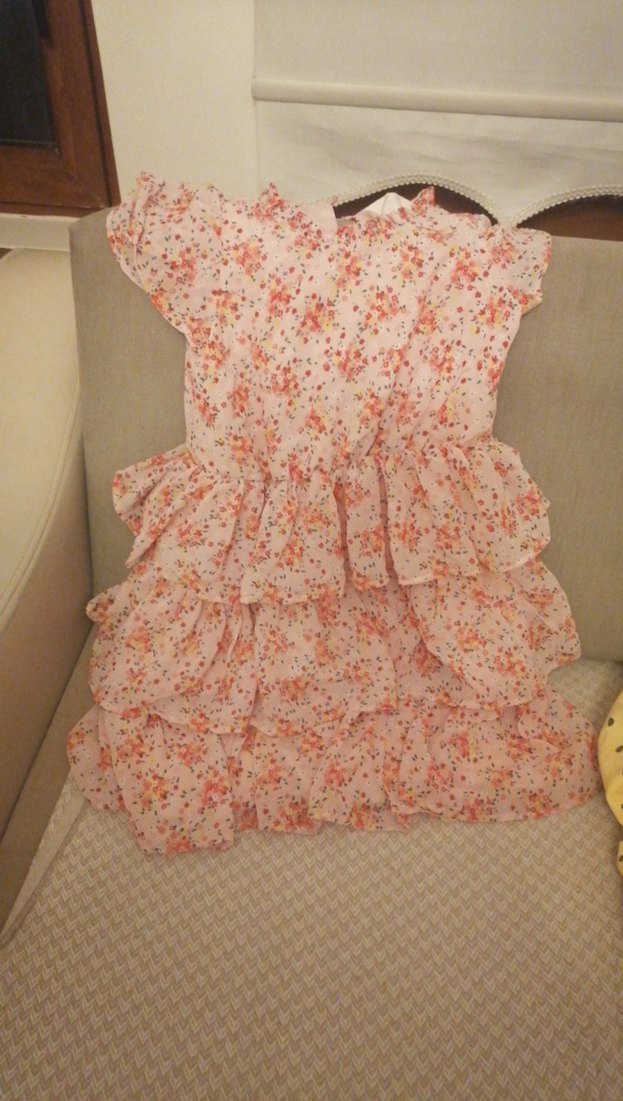 Pembe Çiçekli Kat Kat Kız Elbisesi
