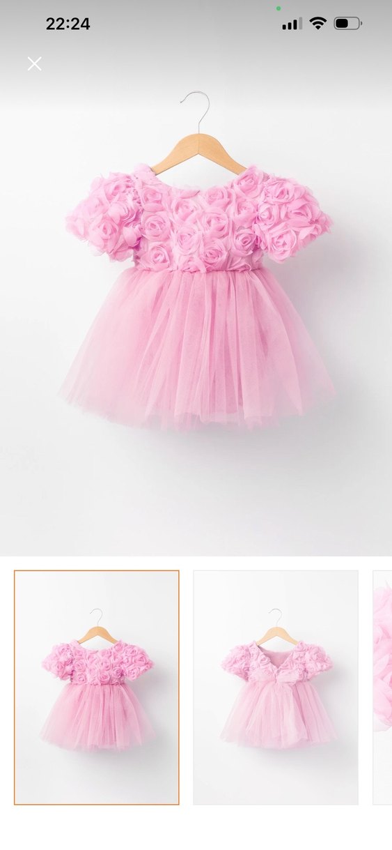 Pembe Çiçekli Kısa Kollu Kız Elbisesi