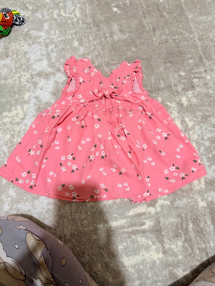 Pembe Çiçekli Kolsuz Kız Elbisesi
