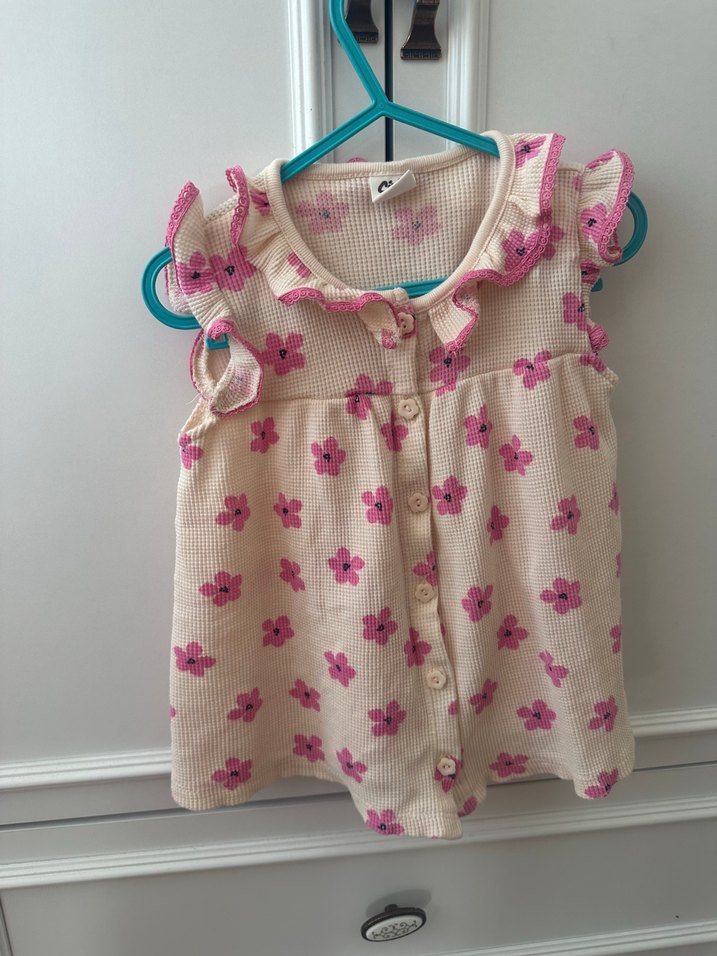 Pembe Çiçekli Kolsuz Kız Elbisesi